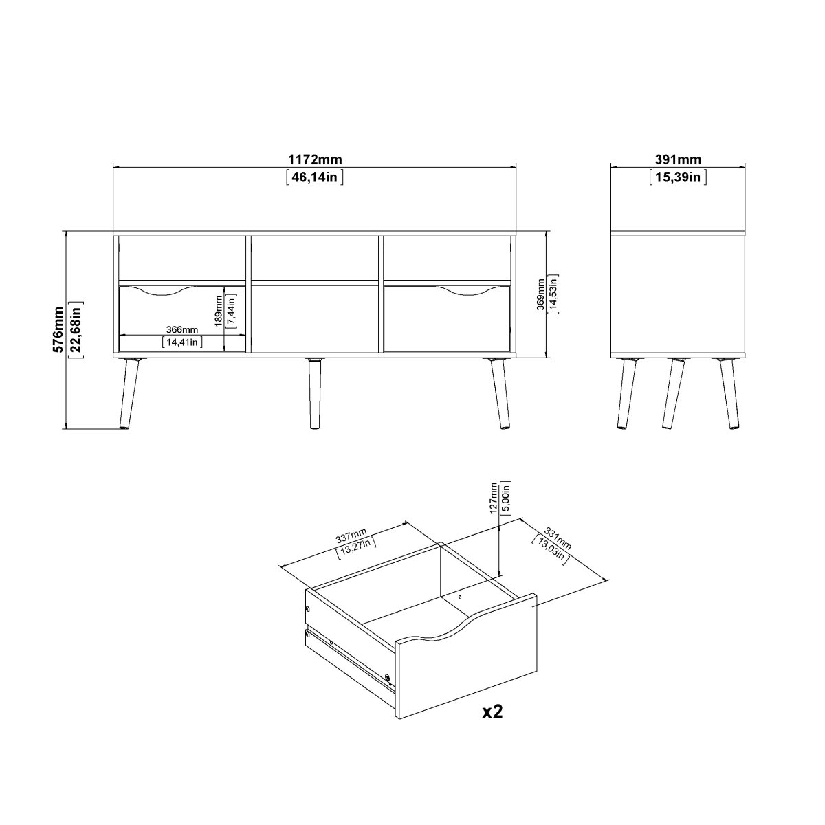 NORDVÄRK Pipralla TV-bord, w. 1 hylla - vit melamin (110x30)