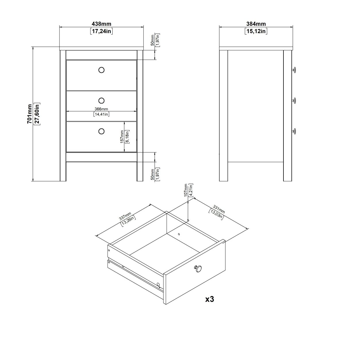 Fält 1 – Mått i cm (L x B x H) 81,3x47x18,3