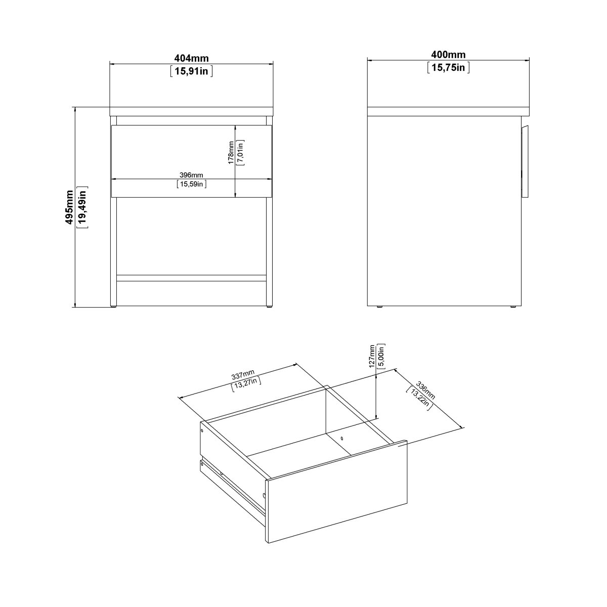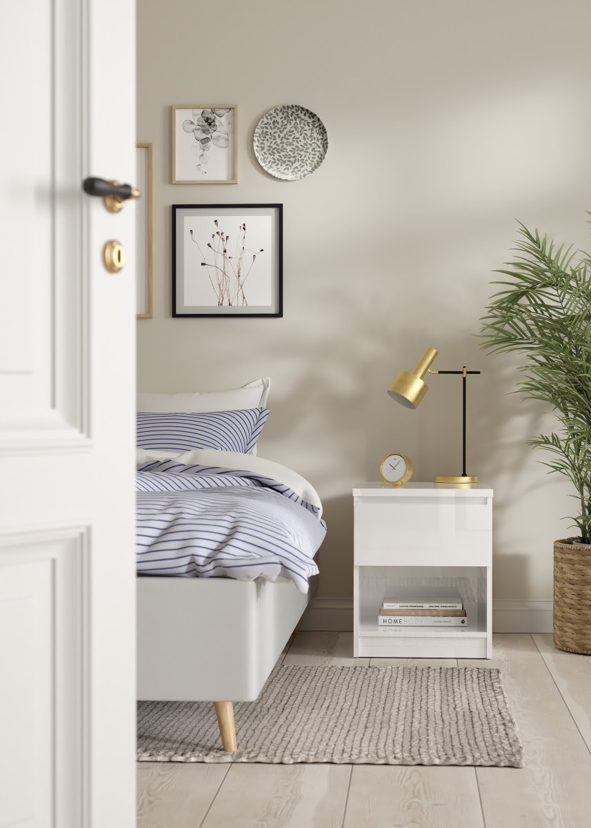 TVILUM Delta sängbord - vit/egstruktur, med 1 låda