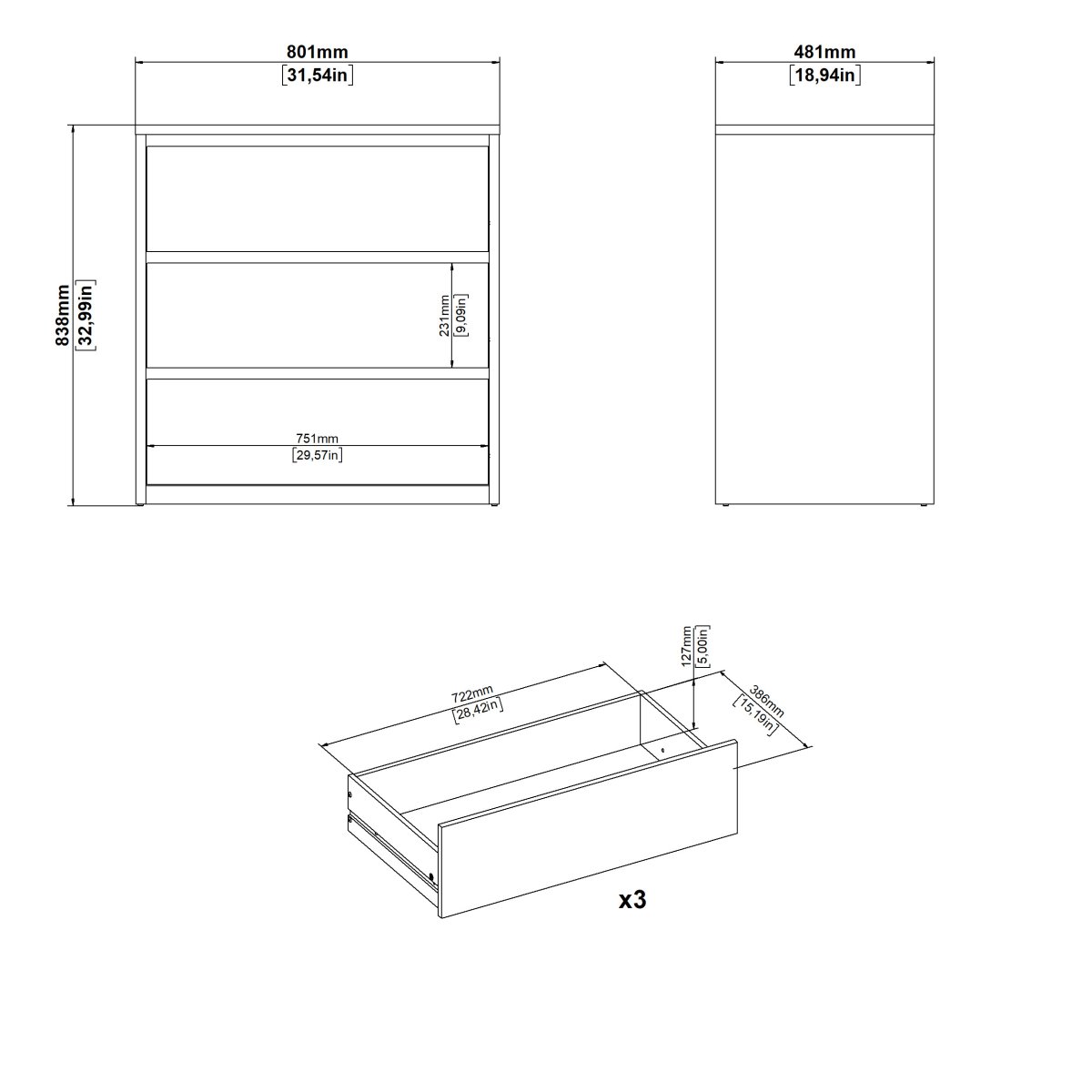 Fält 1 – Mått i cm (L x B x H) 93,8x55,2x18,9