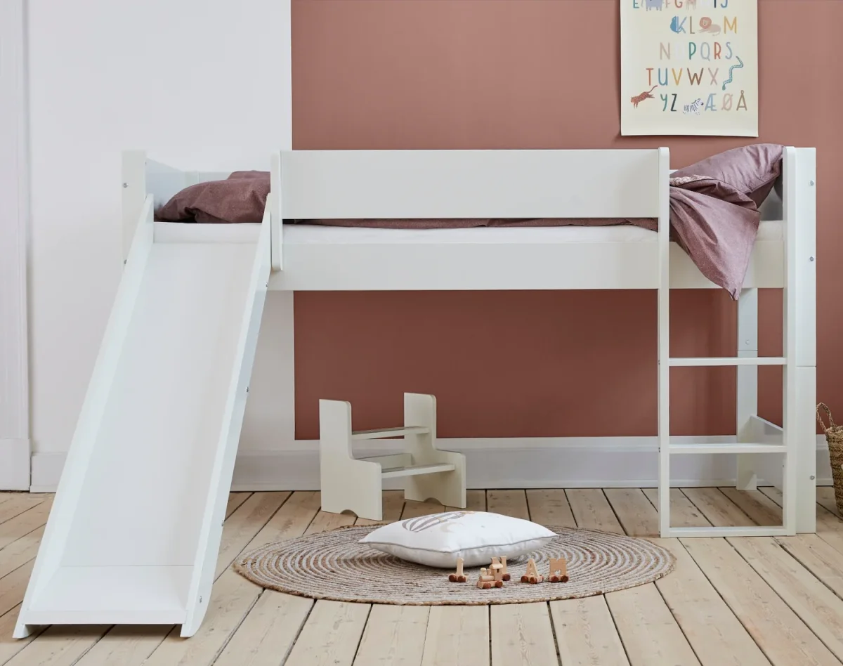 Huxie halvhög säng med rutschkana är en väl genomtänkt lösning för barnrummet, där funktion, säkerhet och flexibilitet kombineras i en möbel med lång livslängd.