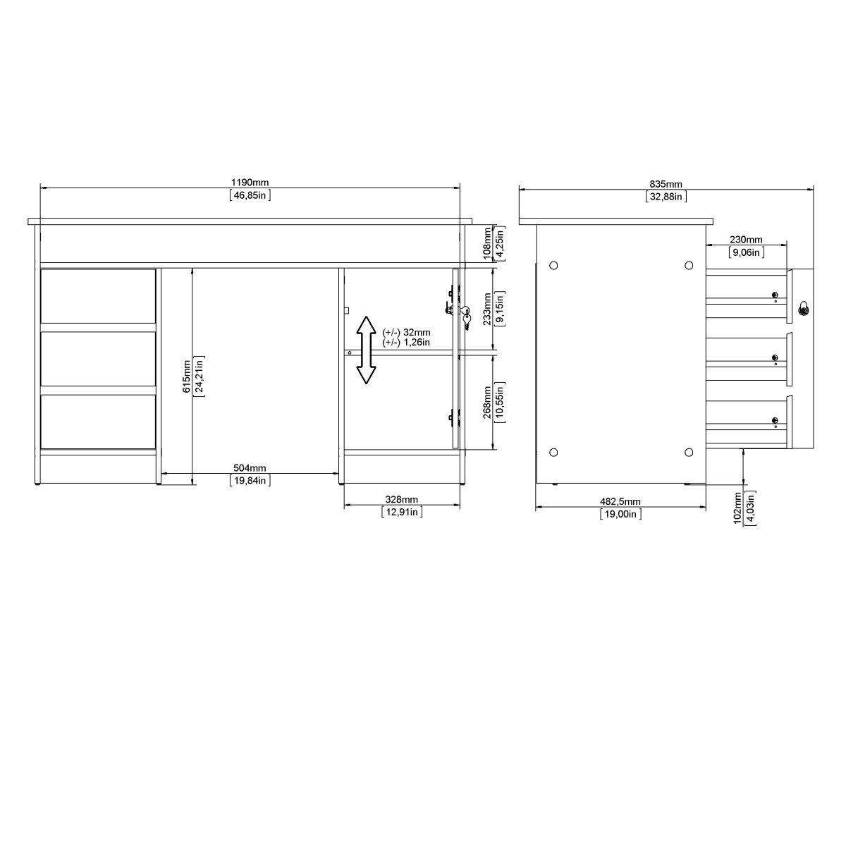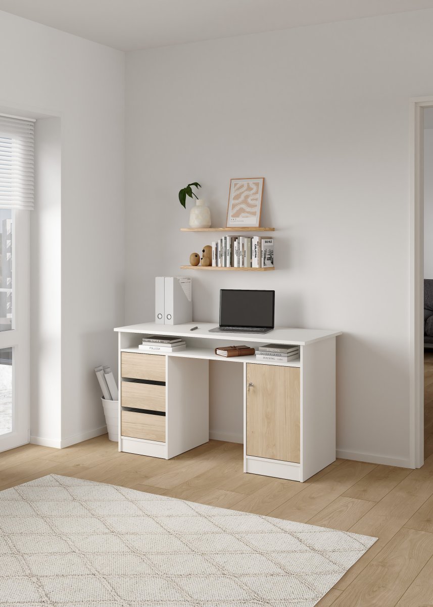Extra info: Function Plus skrivbord 1 dörr + 3 lådor - Parcel, 126 x 55 x 75,36 cm