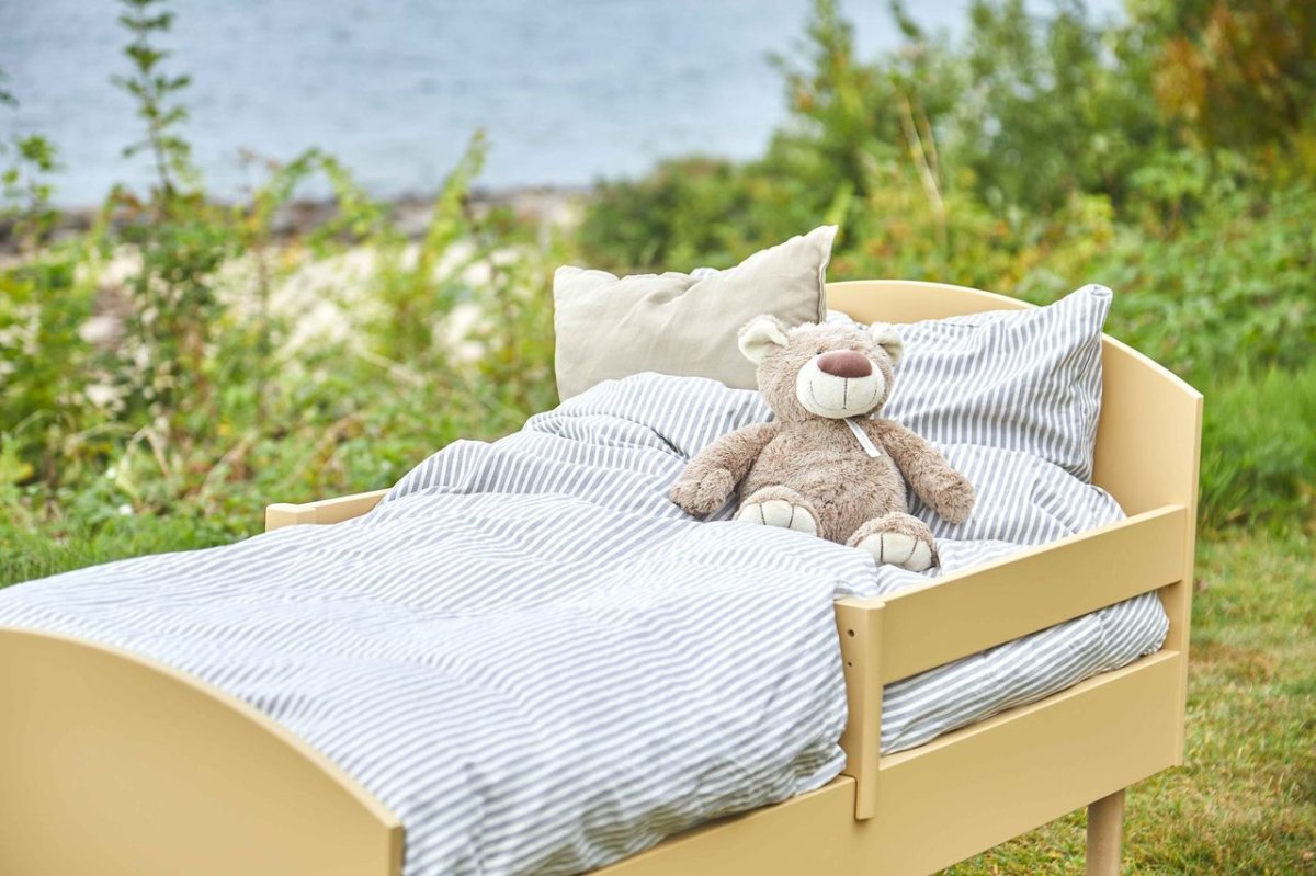 En väl genomtänkt juniorsäng som kombinerar stabilitet, funktion och en klassisk design och är skapad för långvarig användning i barnrummet.
