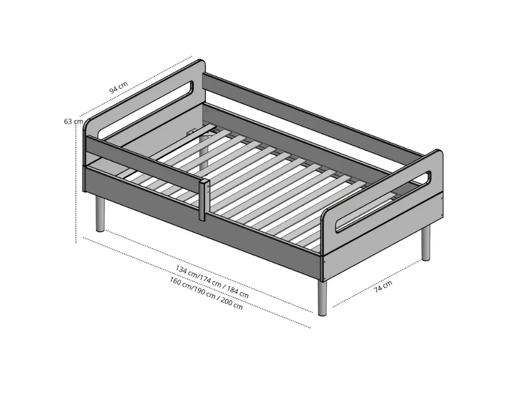 Retro Athene kan konfigureras i upp till 14 vackra färger och finns i längderna 160 cm, 190 cm och 200 cm, så lösningen kan anpassas till barnets ålder och behov när som helst.