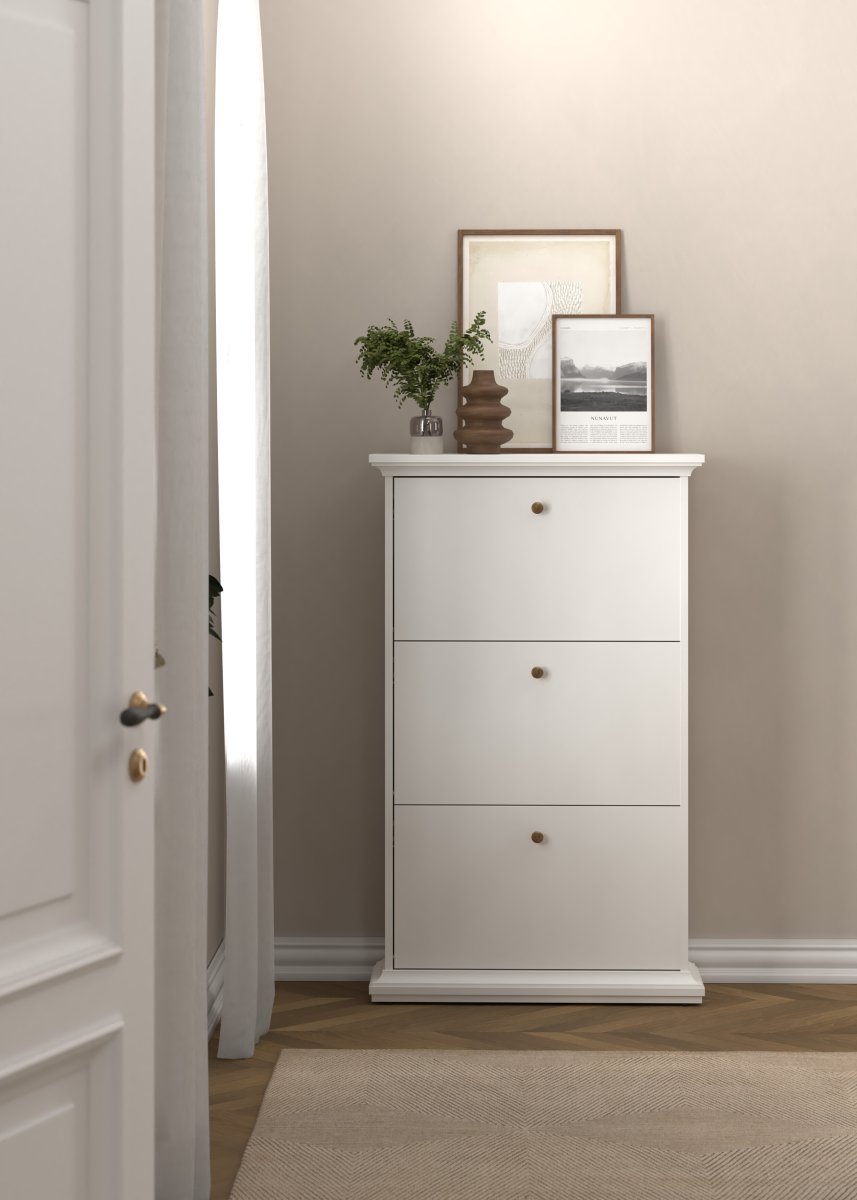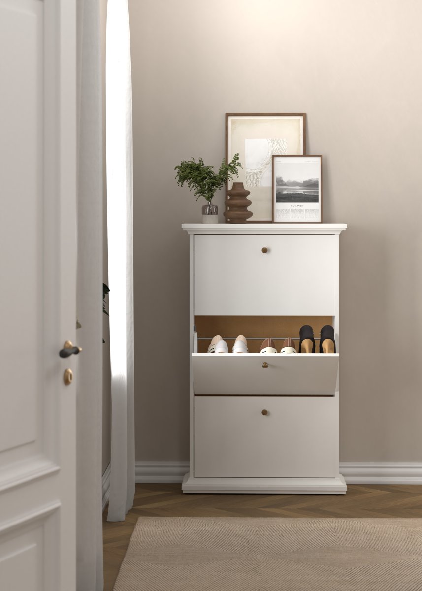 TVILUM Shoes skoskåp - vitt trä, med 2 vikdörrar