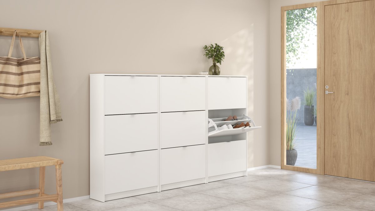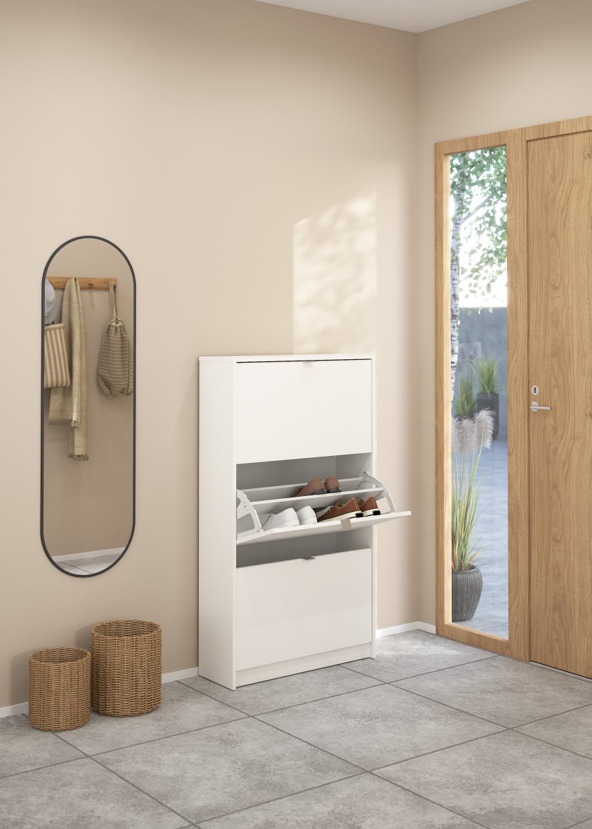 TVILUM Shoes skoskåp - vitt trä, med 2 vikdörrar