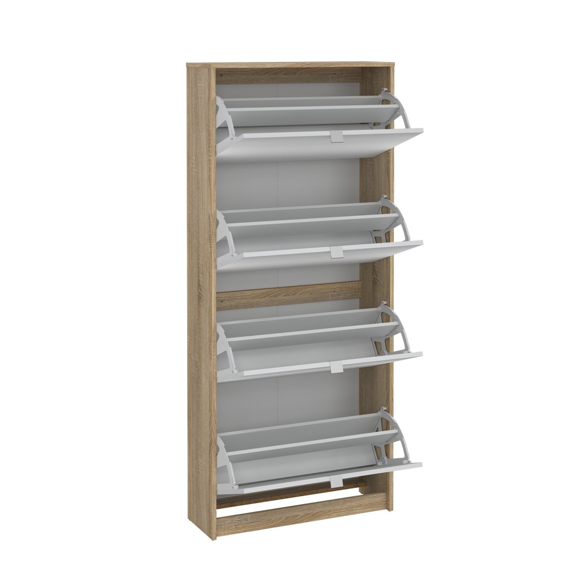 TVILUM Shoe Skoskåp - Vitt Trä, med 4 Vikdörrar och 2 Fack