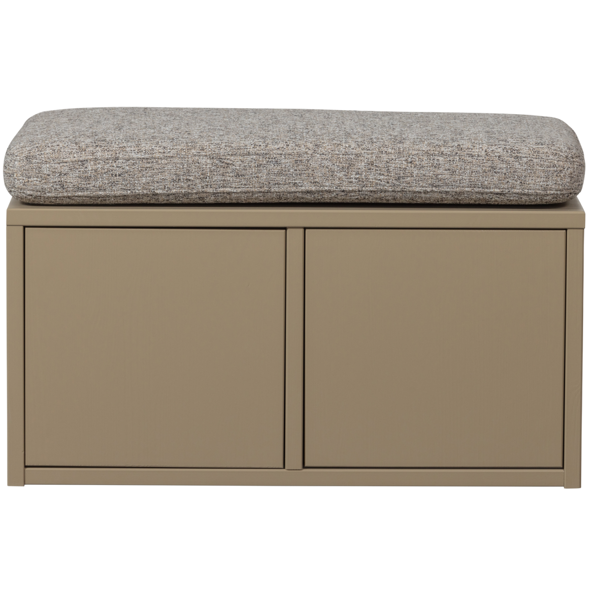 Sittdynan är klädd i ett grovvävt tyg i khaki.