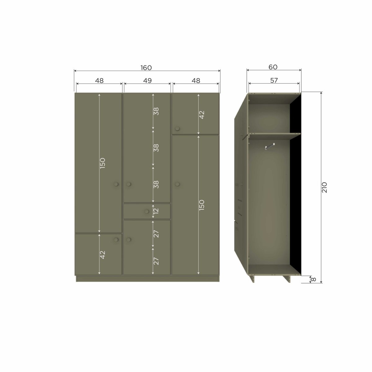 Med tolv rymliga fack och en robust stång erbjuder Alfie gott om förvaringsutrymme för dina kläder.