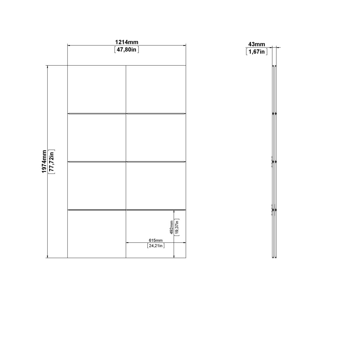 Fält 1 – Mått i cm (L x B x H) 75,1x58,8x14,9