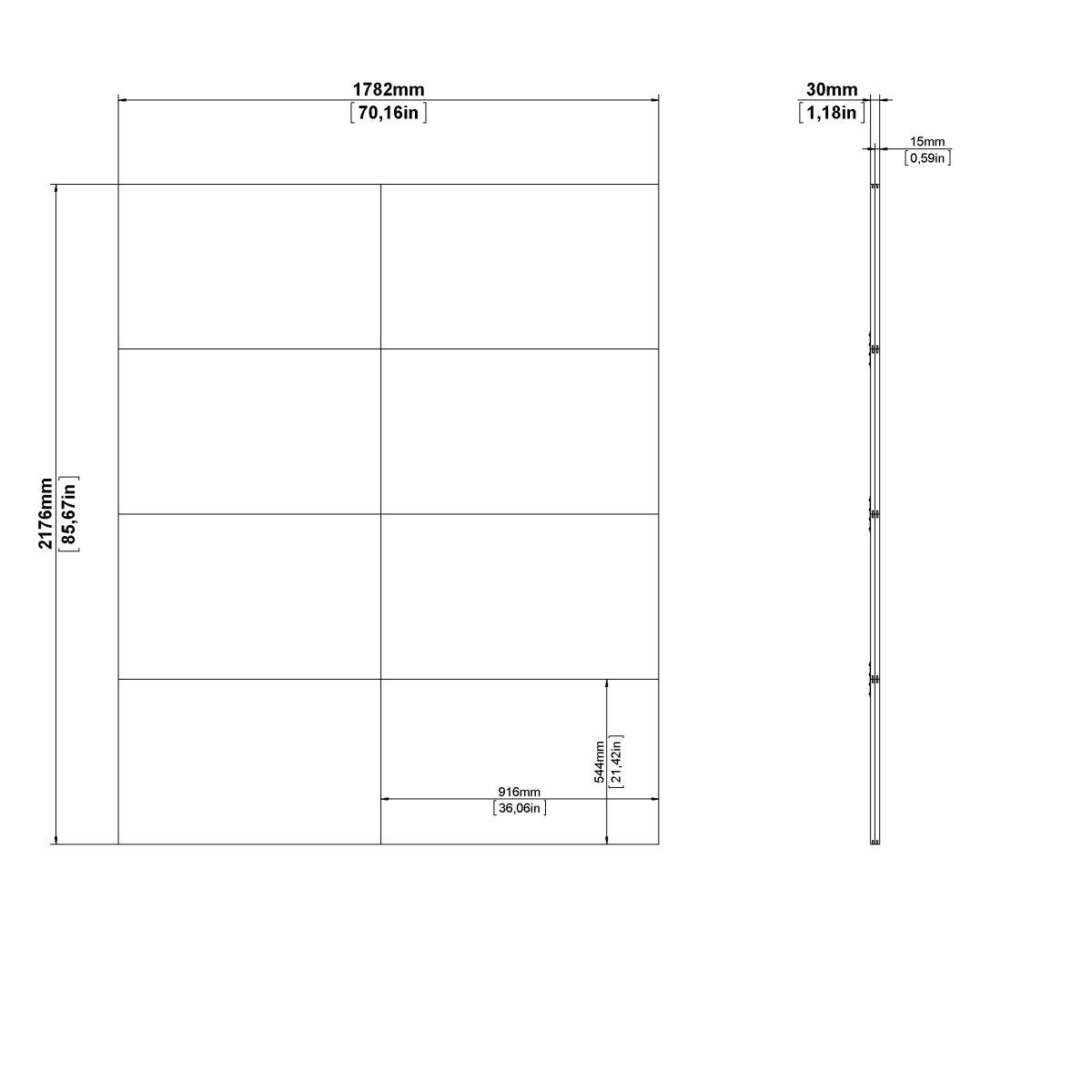 Fält 1 – Mått i cm (L x B x H) 113,1x57x8,9