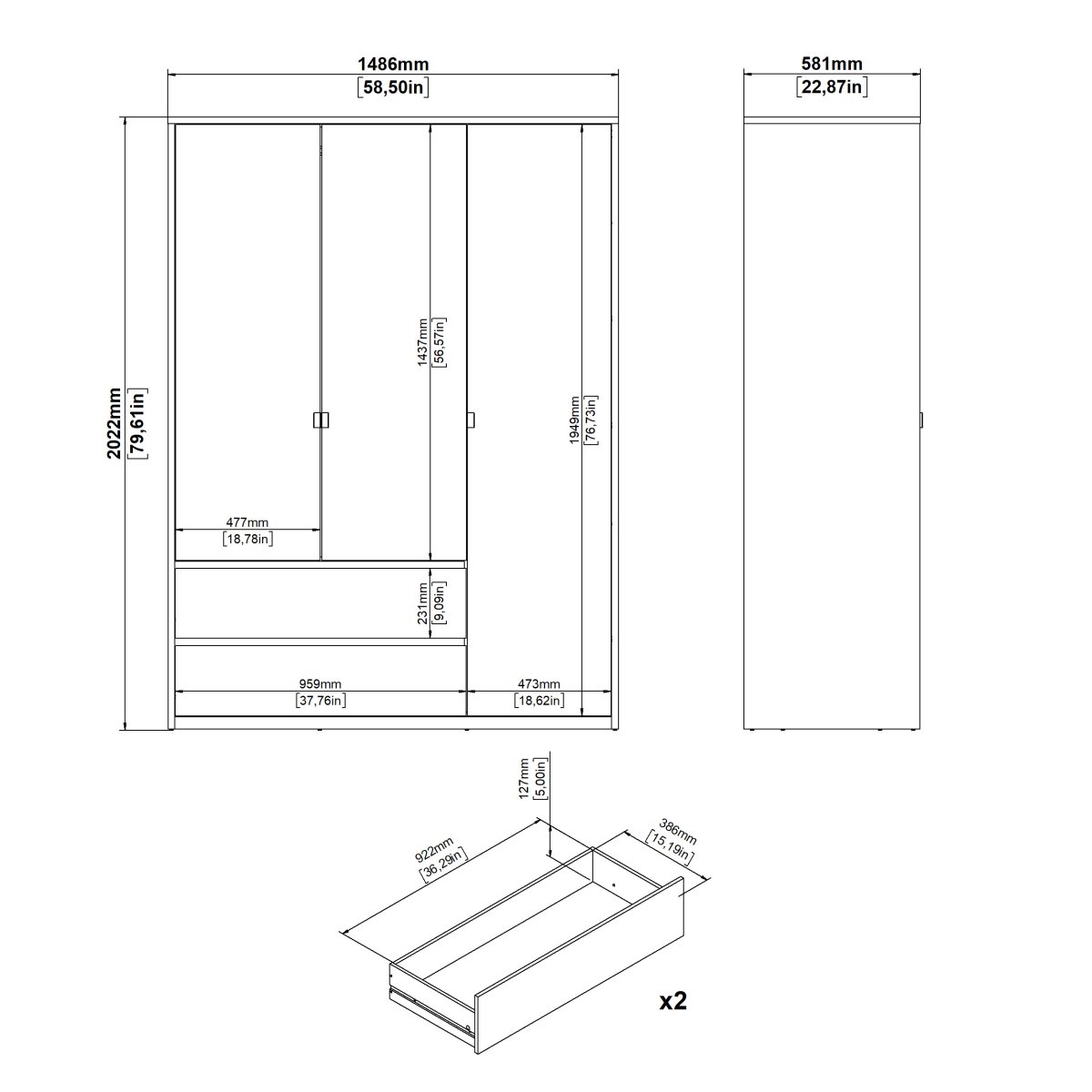 Fält 3 – Mått i cm (L x B x H) 161,1x65,1x9,6