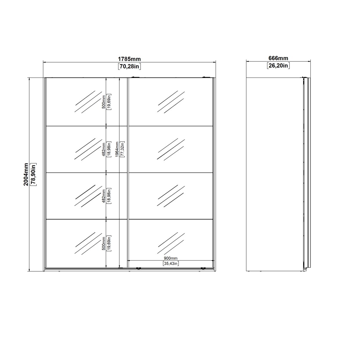 Fält 3 – Mått i cm (L x B x H) 212,6x66,1x7,4