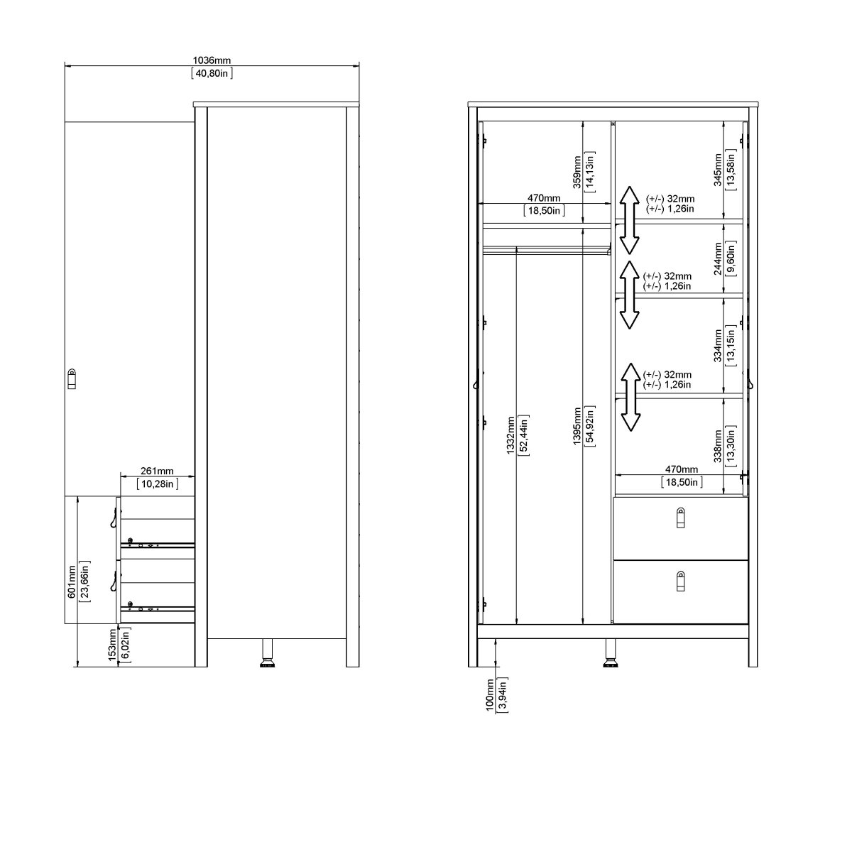 Fält 1 – Mått i cm (L x B x H) 122,5x65,4x11,6
