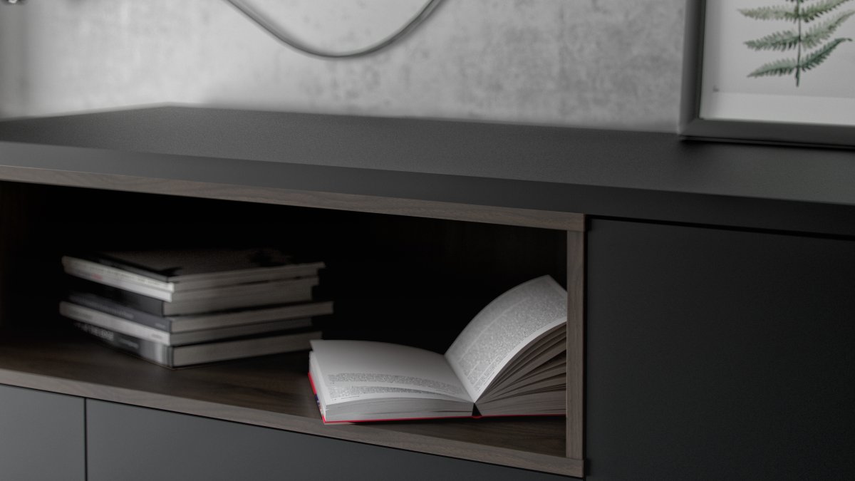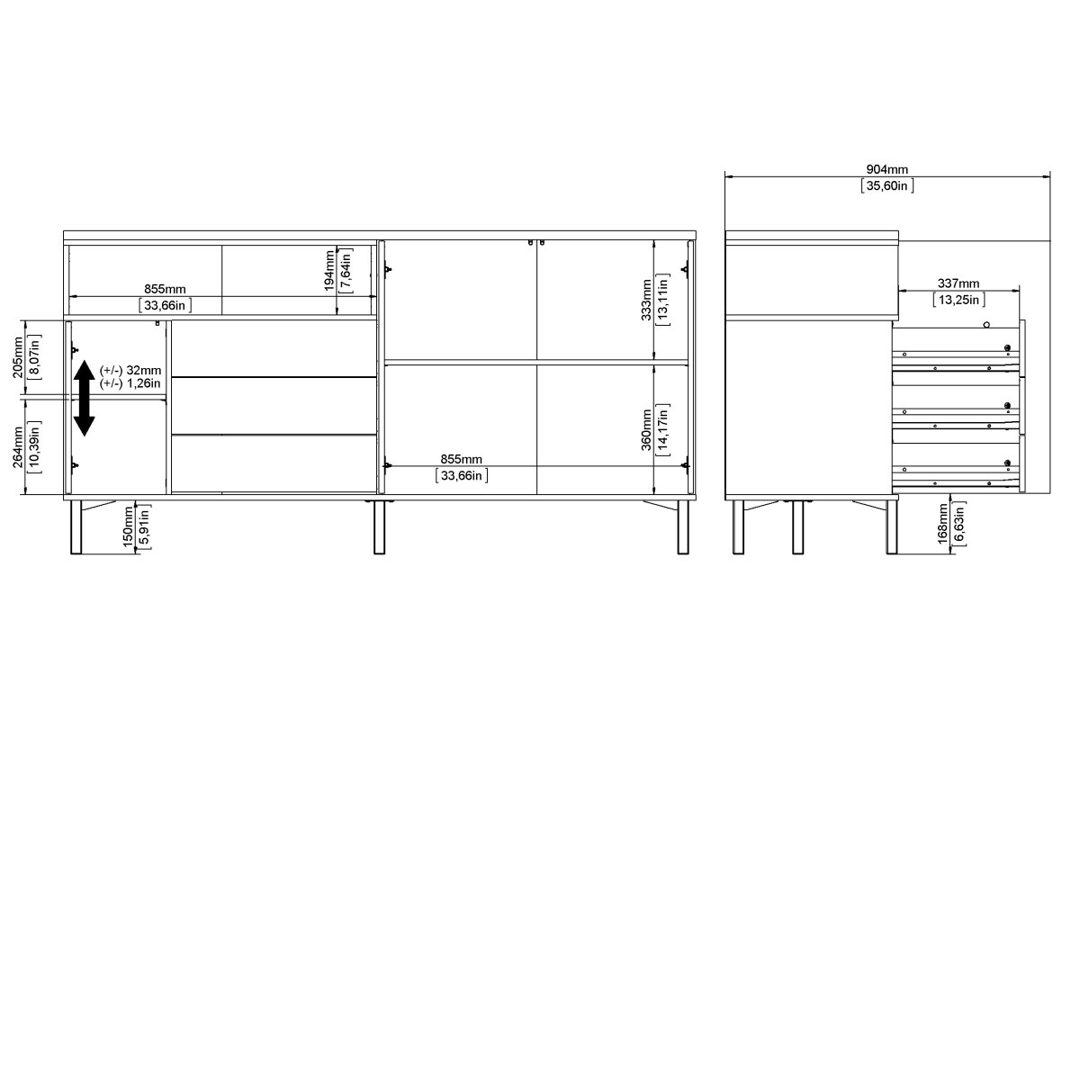 Nyborg skänk, m. 2 luckor, 3 lådor och 2 hyllplan - vitoljad ekfanér, ek och trä (180x45)