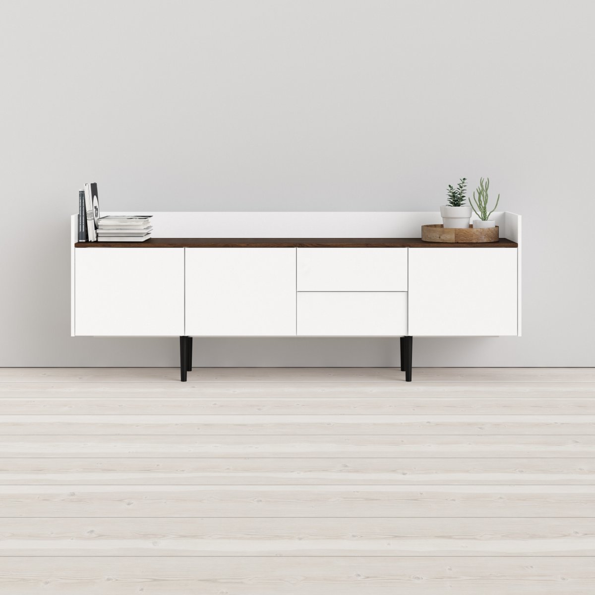 Nyborg skänk, m. 2 luckor, 3 lådor och 2 hyllplan - vitoljad ekfanér, ek och trä (180x45)